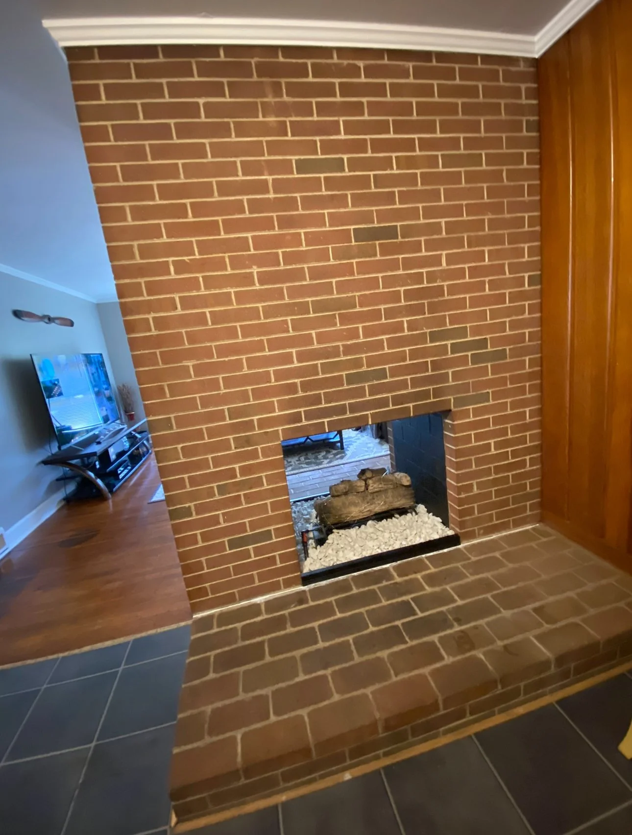 It all begins with an idea. Maybe you have an outdated fireplace that has seen better days. That was the case for this Double-sided Fireplace. The red brick really dated this functional focal point. One side had a mantel while the other was a blank red brick canvas. At the end of the day we all remember the Stockings hung at Christmas and want that vision to be one that creates memories not dread.